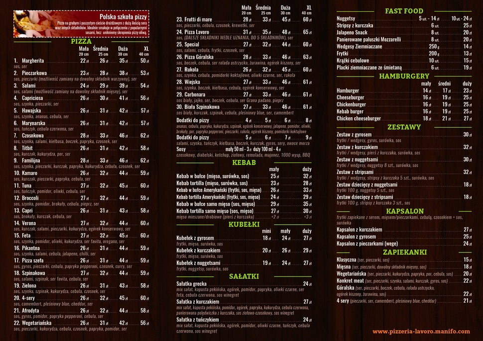 Pizza mała, średnia, duża, sałatki......... 2.00zł